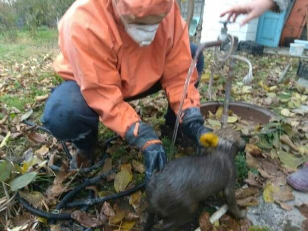 “Прибыв к указанному адресу, спасатели с помощью веревок и подручных средств успешно достали животное из колодца и передали хозяину”, – говорится в сообщении.