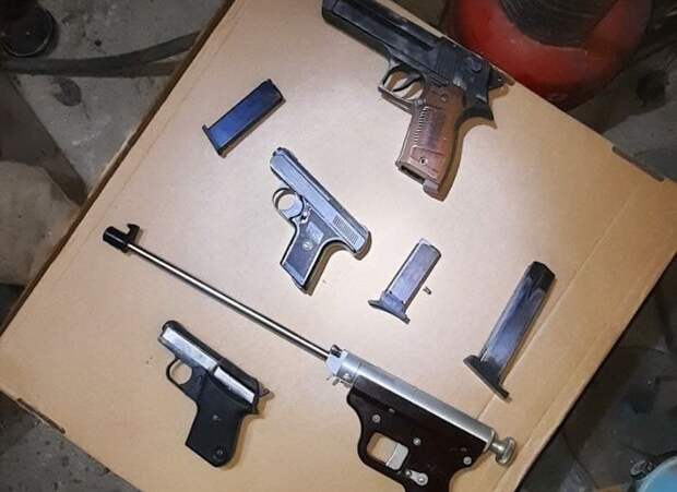 Также в доме, где проживает мужчина, полицейские провели обыск, где нашли и изъяли 4 предмета, схожие на пистолеты, а также патроны различного калибра.